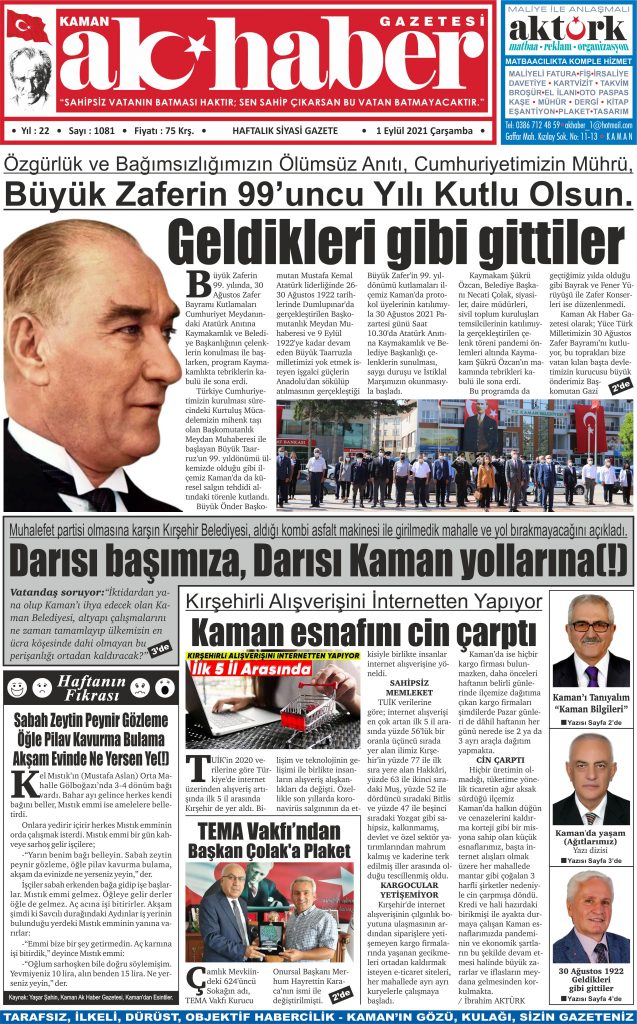 1 Eylül 2021 Çarşamba günü yayınlanan 1081 Sayılı Gazetemizin basılı nüshası. Gazetemizin tamamını okumak için lütfen gazetemizi alınız…
