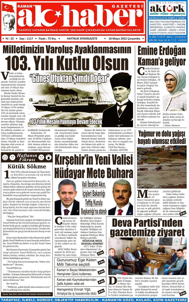 18 Mayıs 2022 Çarşamba günü yayınlanan 1117 Sayılı Gazetemizin basılı nüshası. Gazetemizin tamamını okumak için lütfen gazetemizi alınız…