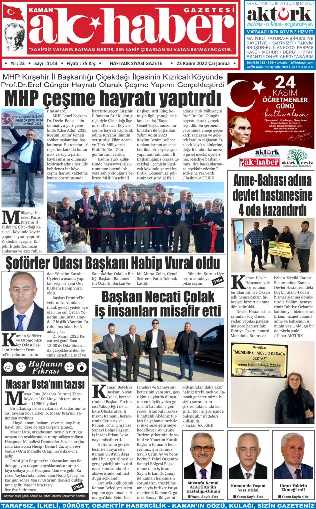 23 Kasım 2022 Çarşamba günü yayınlanan 1143 Sayılı Gazetemizin basılı nüshası. Gazetemizin tamamını okumak için lütfen gazetemizi alınız…