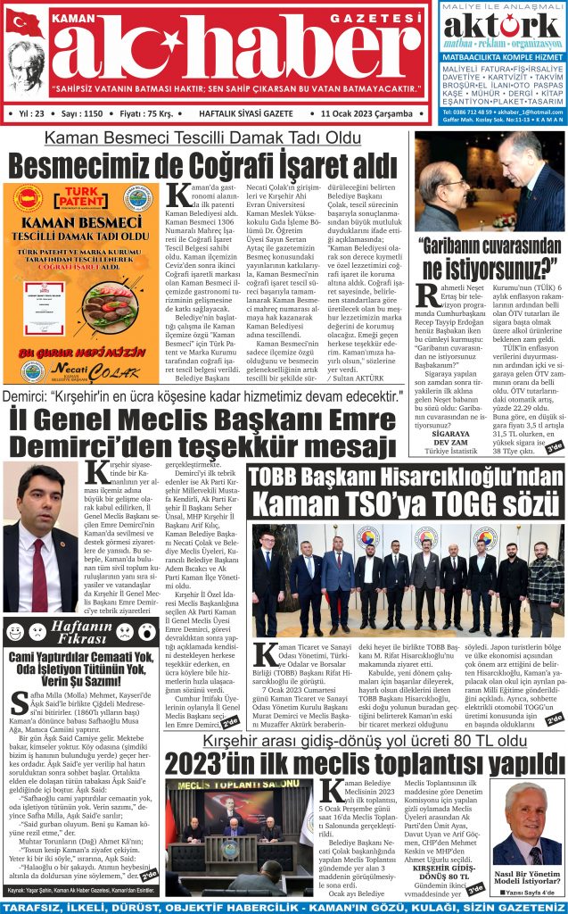 11 Ocak 2023 Çarşamba günü yayınlanan 1150 Sayılı Gazetemizin basılı nüshası. Gazetemizin tamamını okumak için lütfen gazetemizi alınız…