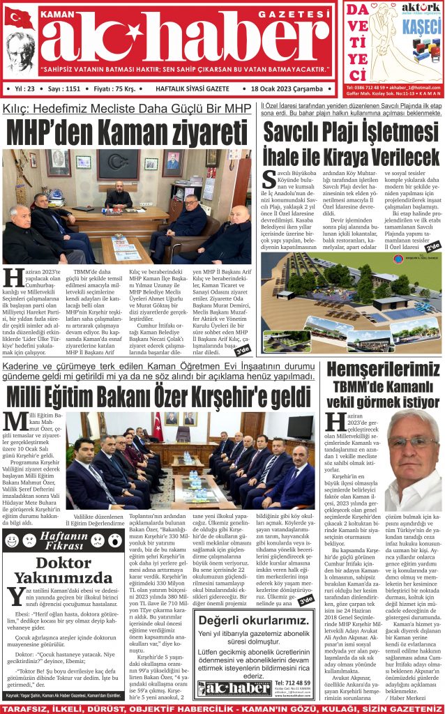 18 Ocak 2023 Çarşamba günü yayınlanan 1151 Sayılı Gazetemizin basılı nüshası. Gazetemizin tamamını okumak için lütfen gazetemizi alınız…