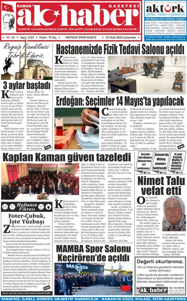25 Ocak 2023 Çarşamba günü yayınlanan 1152 Sayılı Gazetemizin basılı nüshası. Gazetemizin tamamını okumak için lütfen gazetemizi alınız…